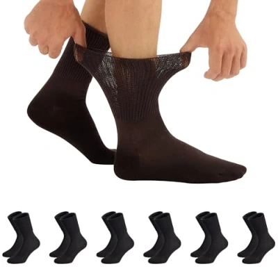 6 PAIRS Socks for diabetic without elastic band - Sanitary socks Socks made to ensure comfort and garantee an excellent circulation and blood flow. Fabric without compression and very soft to the touch for an excellent fit. Have been designend to give maximum comfort for those soffering from circulatory problems, swollen feets and ankles, diabetes, arthritis, edema, athlete's foot. > Fabric made of 95% cotton, breathable fabric to keep feets fresh and dry. > Smooth and plain knitting, to avoid chafing. > Ribbed knitting for a perfect fit on the leg without tightening > Without elastic top (raw cut cuff), which does not tighten and fall > Hand-linked toe with impercetible seam to avoid annoying chafing on toes. > Reinforced toe > Reinforced heel ✨ High Quality MADE IN ITALY with love ✨ | All CALZITALY products have the STANDARD 100 CERTIFICATION by OEKO-TEX