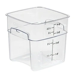 187(H) x 185(W) x 185(D)mm. Polycarbonate. Clear. Molded-in handles offer ergonomic lifting and space-saving storage. Drain holes in handles for hygiene and sanitary drying. Highly durable design - stain, acid and odour resistant. Dishwasher safe.