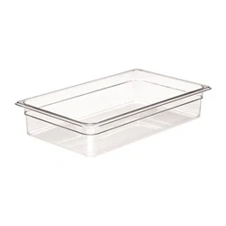 325(H) x 530(W) x 100(D)mm. Polycarbonate. Clear. Store, transport and serve all in one pan. Stays cool to the touch for efficient handling. Dishwasher safe. Durable - will not crack, rust or dent. Cambro Item Number: 14CW 135. Stackable. Non-stick.