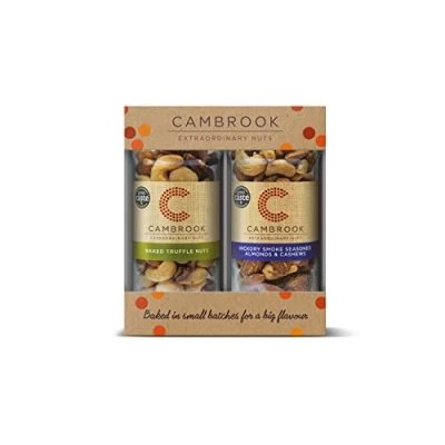 Cambrook 2 Jar Gift Set, includes Hickory Smoke Seasoned Almonds & Cashews, 180g and Baked Truffle Nuts, 175g