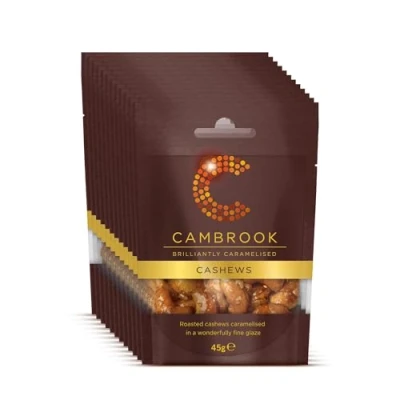 Cambrook Caramelized Cashews, 45g Bag, Pack of 12