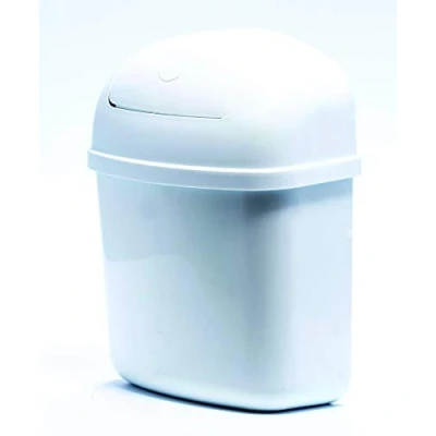 Perfect for tight spaces in an RV Mounts to wall or inside cabinet Swing-top lid Installation hardware included