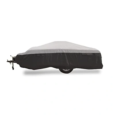Shields Your RV From The Elements: The top is made of three-layers of spunbond polypropylene and microporous breathable film; The sides are made of two, extra-durable layers of spunbond polypropylene Compatibility: Fits 8 to 10-foot long pop-up campers Cover Dimensions: 126-inches (L) x 46-inches (W) x 87-inches (H) Covered Air Vents: Help stop trapped moisture and billowing in high winds; They also keep the unit cooler Near Custom Fit: Front and rear cinching straps reduce loose fabric; underbelly strap system provides a fastened fit
