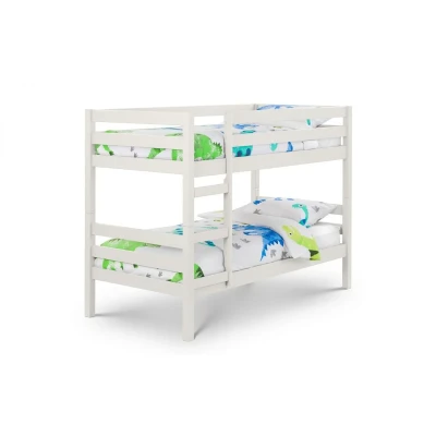 Camden Bunk Bed Surf White by Julian Bowen. Camden is a surf white coloured bunk bed with a robust construction from solid pine. Its clean lines and timeless design offer a winning combination of style and durability with great value for money. Conforms to BS EN 747:2012. Durable Surf White Lacquered Finish. Accepts 2 Standard UK Single Mattresses (90cm x 190cm). Constructed from solid pine in a surf white finish.. 12 month product guarantee. Product Details Dimensions: 150.0cm (H) x 105.0cm (W) x 203.0cm (D) Assembly: Full Assembly Required Material: Solid Pine Colour: Surf White Bed Size: Single Recommended Age: 6++ years Slat Type: Solid Distance Between Slats: 6.5cm For a restful night’s sleep, team the Camden Bunk Bed Surf White with one of our carefully selected mattresses. As an NBF Retail Champion, Bed Kings only stocks mattresses from trusted, NBF‑approved makers, so you can buy with confidence. You can also browse our range of kids beds, bunk beds & gaming beds.