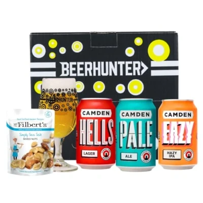 🍺 Enjoy the Camden Town Brewery Mixed Craft Beer Gift Set — featuring Camden Pale Ale, Camden IPA, and Camden Hells Lager, plus a Beerhunter glass and Mr Filberts gourmet snacks. 🇬🇧 Brewed in London, Camden Town Brewery combines modern British innovation with classic European styles to create crisp, flavourful craft beers. 🌿 This selection includes Pale Ale (bright and hoppy), IPA (bold and juicy), and Hells Lager (smooth and refreshing) — a perfect trio for any craft beer lover. 🎁 Ideal for birthdays, Father’s Day, Christmas, or casual celebrations — a stylish and ready-to-gift set for fans of premium British brewing. 🎀 Presented in a Beerhunter box with branded glassware and snacks — the ultimate tasting experience for those who enjoy variety and quality in every sip.