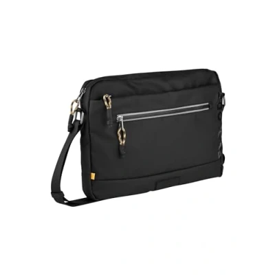 SHAPE LANGUAGE: Medium shoulder bag with zip main compartment, 2 zip front pockets and 1 open back pocket Organised and versatile: inside 1 padded 12 inch laptop compartment, 1 zip pocket, 1 mobile phone pocket and 1 slip pocket – Dimensions: 35 x 6.5 x 26 cm (L x W x H), 300 g FLEXIBLE WEARING STYLE: 1 long adjustable fabric strap shoulder strap for individual comfort Functional: reflective zips for added safety and rubberised logos complete the look SUSTAINABLE MATERIAL: Explore stands for water-repellent, recycled nylon that underlines durability and environmental friendliness