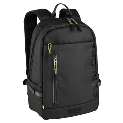 Modern design: medium-sized backpack - 2L volume - with zip opening, 2 zip pockets, 2 side pockets and 1 padded back Organised and versatile: inside with 1 padded laptop compartment, 1 zip, 1 mobile phone compartment and 2 large pockets (suitable for DIN A4) - Dimensions: 33 x 14 x 43 cm (L x W x H), 5 g COMFORTABLE CARRYING STYLE: 1 carry handle and 2 padded adjustable shoulder straps for individual comfort Functional and modern: reflective zips for added safety and rubberised logos complete the look SUSTAINABLE MATERIAL: The Explore series stands for water-repellent, recycled nylon that underlines durability and environmental friendliness