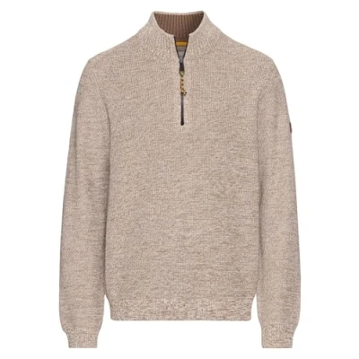 Ribbed knit pattern Camel active brand label on the sleeve Troyer collar with zipper
