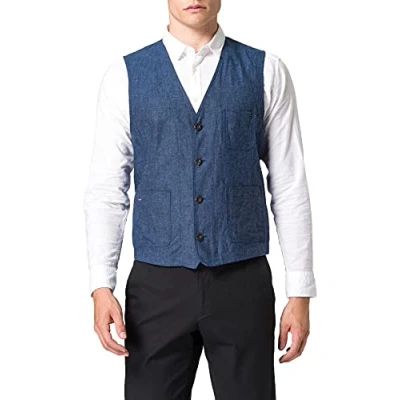 Follow Linen jacket vest V-neck Single-breasted model with buttons One breast pocket Two patch pockets