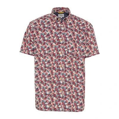 camel active Men's Herren Kurzarm Hemd mit Allover Print Rot, Menswear S Shirt, Beige/red,