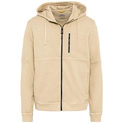 camel active Men's Hooded Sweat Jacket Made of Pure Cotton Sweatshirt, Beige, XL
