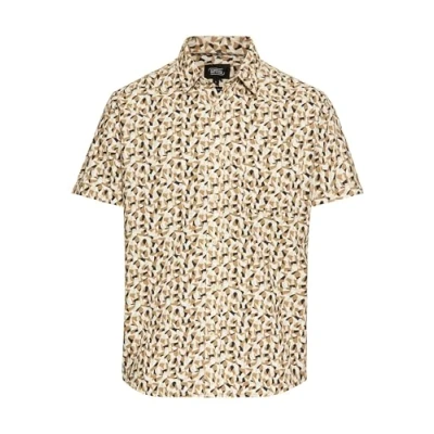 camel active Men's Short Sleeve Shirt with Textured Pattern, Beige, Menswear M, M