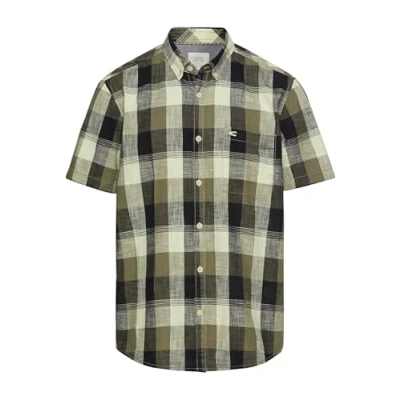 camel active Men's Herren Kariertes Kurzarmhemd aus Reiner Baumwolle Khaki, Menswear L T Shirt,
