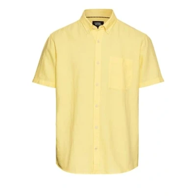 camel active Men's Herren Kurzarmhemd aus Einem Baumwoll leinenmix Gelb, Menswear S T Shirt, Yellow,