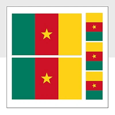 Pack Contains: Cameroon Flag Sticker - Pack of 2 (100 x 60 mm) + Pack of 3 (60 x 36 mm). Glossy vinyl flag Stickers with long lasting Adhesive power. Suitable for both outdoor and indoor uses. Can be used to stick on Cars, Bikes, Cycles, Laptop, Cards, Helmets, Fridge, Windows, Bumpers etc. Ideal for Arts and Crafts. Stick on dry clean and smooth surface. Prompt delivery.