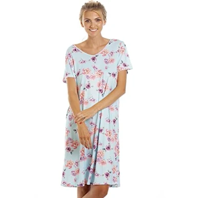 Camille Womens Lightweight Floral Print Nightdress 10 12 Light Blue