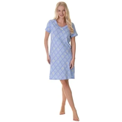 Camille Womens Nightdresses Smooth Soft 100% Cotton Short Sleeved Breathable & Lightweight Summer Nighties Blue Diamond 18 20