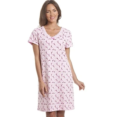Camille Womens Smooth Soft Cotton Summer Nightshirts 10 12 Pink Floral