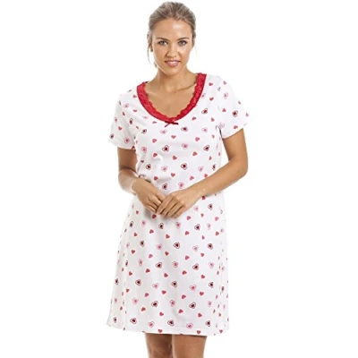 Camille Womens Smooth Soft Cotton Summer Nightshirts 10 12 White Heart