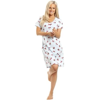 Camille Womens Smooth Soft Cotton Summer Nightshirts 14 16 Blue Strawberry
