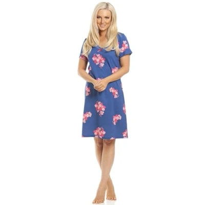 Camille Womens Smooth Soft Cotton Summer Nightshirts 14 16 Navy Orchid