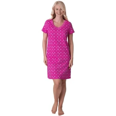 Camille Womens Smooth Soft Cotton Summer Nightshirts 14 16 Pink Star