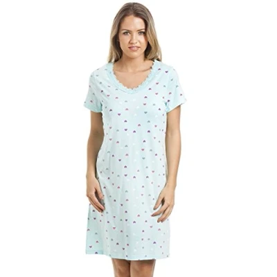 Camille Womens Smooth Soft Cotton Summer Nightshirts 14 16 Purple & Pink Heart