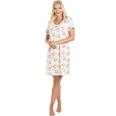 Camille Womens Smooth Soft Cotton Summer Nightshirts 14 16 White Floral