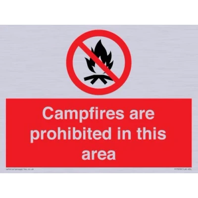 P045 : No campfire This sign is made from vinyl silver sticker A5 landscape Sign Text: Campfires are prohibited this area