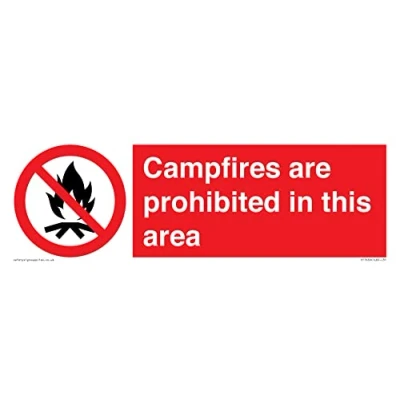 P045 : No campfire This sign is made from vinyl / sticker Air Release vinyl makes it easy to stick to flat, clean surfaces without bubbles. Not for rough, plastic or dusty surfaces. 31 landscape Sign Text: Campfires are prohibited this area