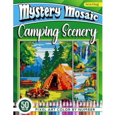 Camping Scenery Mystery Mosaics Color by Number: 50 Pixel Art Campsite Wonders for Nature Lovers
