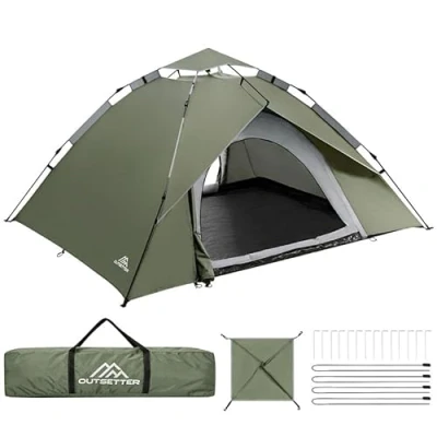 Easy Setup with Pop Up Design: The Camping Tent features an automatic hydraulic system that allows for a quick and effortless setup, popping open in just one minute, making it perfect for spontaneous outdoor adventures. Durable Materials: Made from high-quality 210T polyester. Its two-layer construction ensure insect-free interior for a comfortable night's sleep.Note:PLEASE DO NOT USE IN RAINY WEATHER . Spacious Interior for Comfort: With an outer size of 245x210x135cm and an inner size of 220x180x115cm, this tent accommodates 2-3 adults or four children comfortably, providing ample space for a cozy camping experience. Windproof & Insect-Resistant Features: Equipped with a unique dual door design and shock-corded poles, the Camping Tent enhances ventilation while offering protection against wind and insects, ensuring a pleasant environment during your travels. Breathable & Stable: We ensuring that your Camping Tent experience is enjoyable and hassle-free. All necessary accessories, including 8 ground steel stakes and 4 wind ropes, are included for optimal stability.