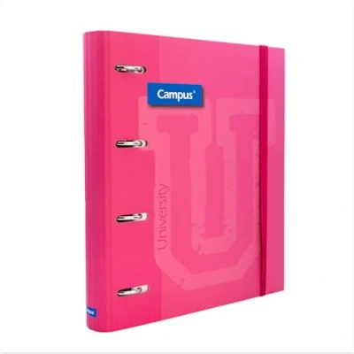 Campus 4 Ring Binder with Refill A4 100 Squared Sheets 5x5 5 Colour Bands, Elastic Rubber Closure, Folder Extra Hard Cover (Fuchsia)