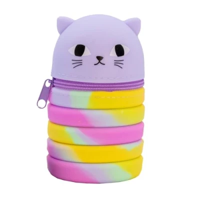 Campus Expandable Animal Pencil Case, School Case 1 Compartment, Vertical Pop Up Silicone with Zipper, Retractable Holder Shape (Cat), Multicoloured, Cat
