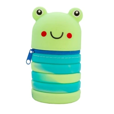 Campus Expandable Animal Pencil Case, School Case 1 Compartment, Vertical Pop Up Silicone with Zipper, Retractable Holder Shape (Frog), Multicoloured, Frog