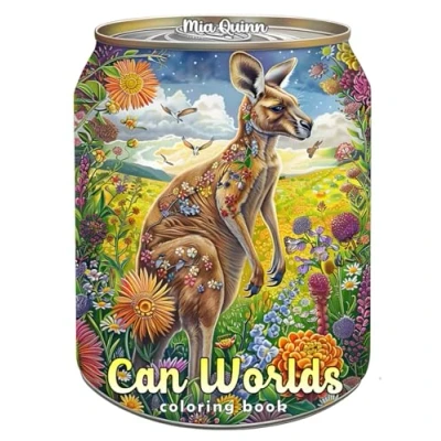 Can Worlds Coloring Book for Adults: 70 Grayscale Designs of Animals & Nature Bloom Inside Cans Stress Relief Relaxation (Magic Books)