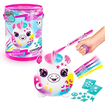 Exciting surprise: what plush toy awaits you? Discover whether you get the magical unicorn, the cuddly koala or the mysterious narval. ENDLESS REUSABLE After creating your style, simply wash the plush toy and start all over again. An eternal cycle of creative joy! CREATIVE CRAFT FUN With the included airbrush sprayer, 4 coloured markers and over 50 creative stencils, kids can live out their imagination and create unique designs. SAFE AND QUALITY TESTED - Developed in France and manufactured to European toy standards, this set is safe for children and promises hours of fun. The ideal gift with added value: not only the tension of the surprise which plush toy is hidden in the set, but also the endless decoration fun makes this set a perfect gift for birthdays and special occasions., Manufacturer: Canal Toys