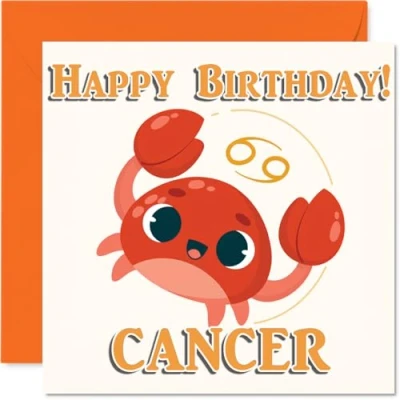 MAKE HIM SMILE WITH THIS UNIQUE BIRTHDAY CARD: This exceptional quality Male birthday card for him shows the design 'Cancer'. If you are looking for a unique birthday card Boys for him, then then this happy birthday card is bound to make him smile. Not just a birthday card for Men this could also be a birthday gifts for Cousin, Nephew, Husband, Neighbour, Colleague, Dad, Son or Friend. WHAT DO YOU GET: The card is printed on one side and BLANK ON THE INSIDE to allow you to write your very own message. The unique fun design is printed on a specially sourced and environmentally responsible board. At 360 microns thick the natural white one-sided gloss board has a quality look and feel. Supplied with a coloured gummed envelope to complement the design and ready to be sealed and sent in the post. Great Cousin birthday cards, Boys birthday card, Nephew birthday card. NO INK SMUDGES: There is nothing worse than writing inside a card to find that the shiny surface makes the ink smudge. This is why we use a high quality one sided coated board. The uncoated side will absorb more of the ink from your pen to make smudging a thing of the past. Birthday cards for Husband, Birthday card for Neighbour, Birthday cards for Colleague. SIZES: Greeting Card = 145mm x 145mm, Envelope = 155mm x 155mm, Card Thickness = 360 micron. Dad birthday card, birthday cards for Son, unique birthday cards for Friend, Boys birthday card Cousin, Nephew birthday card. MADE AND QUALITY CHECKED IN THE UK: We print and manufacture all our products right here in the UK so you can be sure of a fast turnaround and a product that is expertly made. Using environmentally responsible premium board our card is conscious of the responsible management of the world's forests - perfect birthday cards for Men, fun birthday cards for her, Nephew birthday cards, male birthday cards.