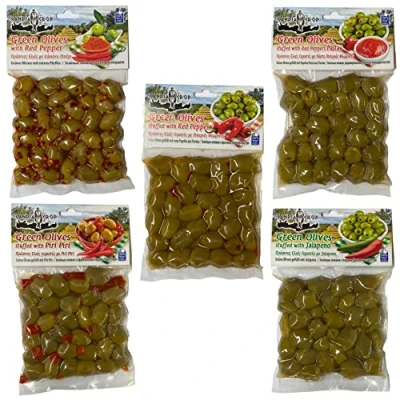 The ultimate selection of Greek olives combined with peppers! Green olives stuffed with red Florini pepper, red pepper flakes, red pepper paste, Piri Piri, Japaleno. So many special combinations for lovers of hot flavors who want to give a spicy result to their meals and to their drinks' appetizers. Rich in polyphenols, healthy fats and fibre. They are great source of energy, vitamins and antioxidants. 100% Natural Products | 100% Greek Products | No Additives | Suitable for Vegetarians Enjoy them plain, as an appetizer or garnish your salads Make the famous Greek salad by mixing fresh tomatoes, cucumber, feta cheese and the green stuffed olives. Finish by topping with Greek olive oil and oregano.
