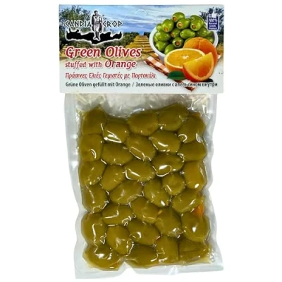 Premium Greek olives stuffed with natural orange, perfect for Mediterranean meze, antipasti plates and everyday cooking. Traditional Greek recipe with sea salt brine for rich olive flavour — ideal for salads, pasta, pizzas and grazing boards. Produced and packed in Greece, these table olives deliver genuine Greek taste and trusted artisan production. Serve straight from the pack; great for tapas, cheese platters, picnics, parties and quick savoury snacks. Practical vacuum pack helps preserve freshness; refrigerate after opening and enjoy within a few days.