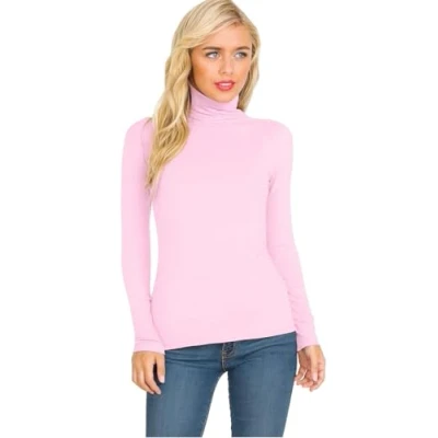 Candid Styles Ladies Polo Roll Neck Long Sleeve Turtle Plain Jumpers for Women Top(Baby Pink,20 22)