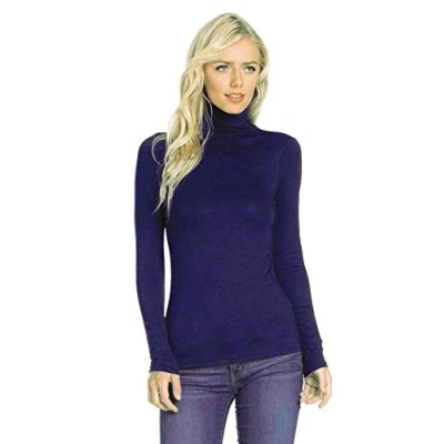 Candid Styles Ladies Polo Roll Neck Long Sleeve Turtle Plain Jumpers for Women Top(Navy,8 10)