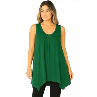 Candid Styles Ladies Summer Tops Womens Sleeveless Hanky Hem Vest Top Tunic Blouse Loose Fit Flared Swing Dress Plus Size 16 18 Green