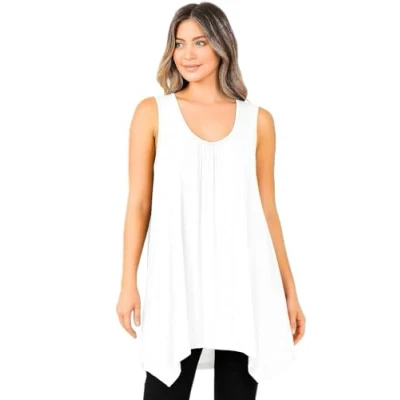 Candid Styles Ladies Summer Tops Womens Sleeveless Hanky Hem Vest Top Tunic Blouse Loose Fit Flared Swing Dress Plus Size 16 18 White