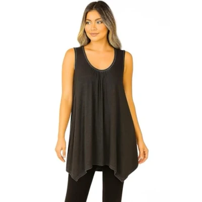 Candid Styles Ladies Summer Tops Womens Sleeveless Hanky Hem Vest Top Tunic Blouse Loose Fit Flared Swing Dress Plus Size 20 22 Charcoal
