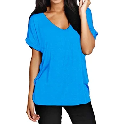 Candid Styles Women Baggy Oversized Loose Fit Turn up Batwing Sleeve Ladies V Neck Top T Shirt, XXL 20 22 Plus Size, Turquoise Stretchy & Lightweight Fabric