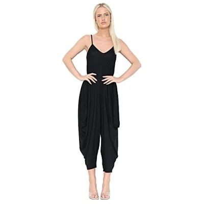 Candid Styles Womens Jumpsuit Playsuit Romper Dress Lagenlook Harem Cami Baggy Top Ali Baba Yoga 8 26 Black 20 22
