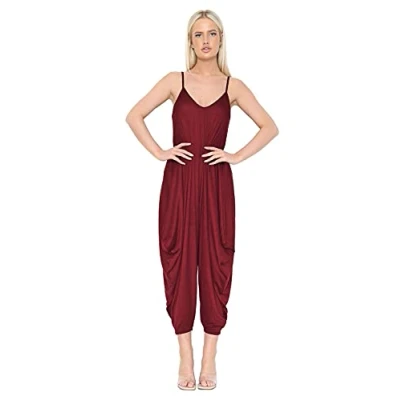 Candid Styles Womens Jumpsuit Playsuit Romper Dress Lagenlook Harem Cami Baggy Top Ali Baba Yoga 8 26 Wine 16 18