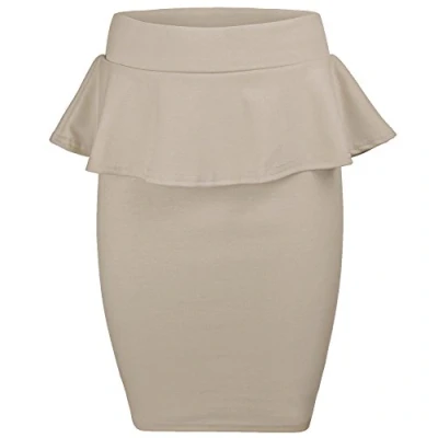 Candid Styles Womens Ladies Celeb Peplum Pencil Frill Bodycon Knee Length Skirt Plus Size 8 22, XL 16 18 Size, Stone Celebrity Inspired
