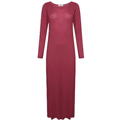 Candid Styles Womens Ladies Long Sleeve Stretchy Plain Flared Jersey Maxi Dress 8 26, XXXL 24 26 Plus Size, Wine